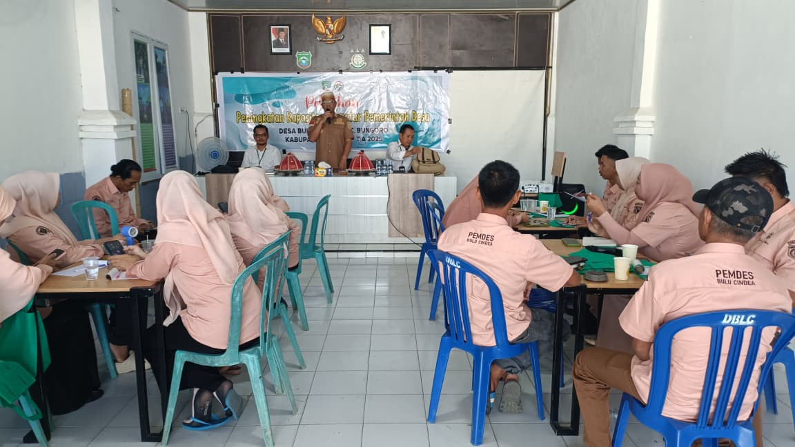 Pada hari Selasa, 14 Oktober 2025, Penyuluh KB Desa Bulu Cindea ikut berperan aktif dalam kegiatan Peningkatan Kapasitas Aparatur Desa yang dilaksanakan di Kantor Desa Bulu Cindea, Kecamatan Bungoro, Kabupaten Pangkep. Kegiatan ini dihadiri oleh Kepala Desa, perangkat desa, kader, serta tokoh masyarakat, dengan tujuan untuk memperkuat pemahaman dan kemampuan aparatur desa dalam melaksanakan tugas pelayanan kepada masyarakat.
