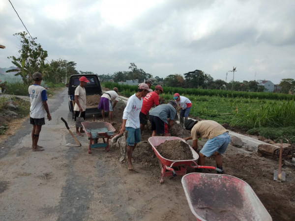 Kerja Bakti warga RW 35 di sepanjang area persawahan malangrejo yaitu membersihkan dan mengangkut tanah bekas galian saluran irigasi