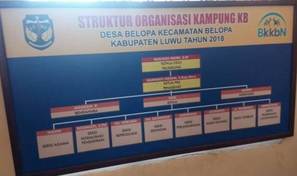 Jumlah Kepala Keluarga di Desa Belopa sebanyak 724 KK dan 493 Pasangan Usia Subur (PUS). Peserta KB Aktif sampai dengan bulan Desember 2018 adalah 331 Akseptor. Alat kontrasepsi yang dominan digunakan adalah suntik. Pencapaian Akseptor Baru MKJP masih rendah.