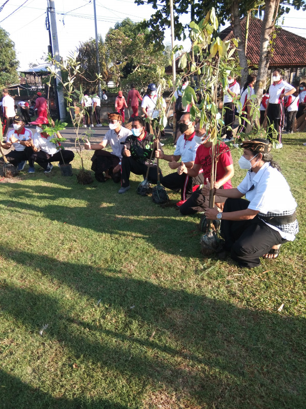 Dalam Rangka perayaan Bulan Bung Karno DP2KBP3A sebagai bapak Asuh Pelesatarian Lingkungan dengan penanaman pohon penghijauan di pure dalem desa adat Buduk