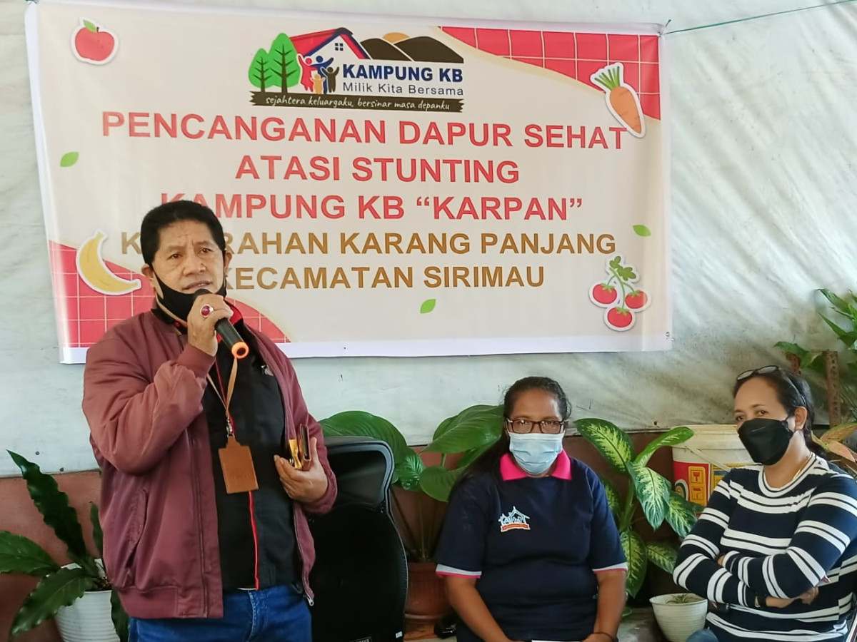 Kegiatan ini bertujuan untuk memberikan edukasih tentang makanan bergizi dan sehat sebagai asupan dalam upaya pencegahan dan penanggulangan stunting yang dihadiri oleh perwakilan Camat Sirimau, Lurah karang panjang, pengurus pokja, PKK, Tenaga gizi dari puskesmas karang panjang , Remaja, ibu hamil, ibu baduta dan balita, Setelah mengikuti kegiatan ini peserta khususnya remaja ibu hamil,. ibu baduta dan balita, dapat menyediaskan dan mengkomsusmsi makanan yang bergisi dan seimbang yang di peroleh dari lingkunggan sekitar dalam upaya pemenuhan gizi untuk pencegahan dan penanggulangan stunting Kegiatan ini terlaksana dikarenakan usaha yang dilakukan oleh pokja kampung KB bersama PKB pembina, tenaga gizi serta PKK dalam mengadvokasi/membuat proposal/mengajak semua unsur masyarakat seperti PKK, tenaga gizi, lurah sehingga dengan bantuan/fasilitasi dari kelurahanKegiatan ini terlaksanan dengan antusias peserta cukup baik