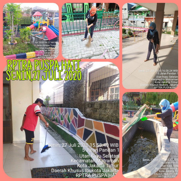 - Membersihkan indoor dan outdoor RPTRA (menyapu dan mengepel lantai)