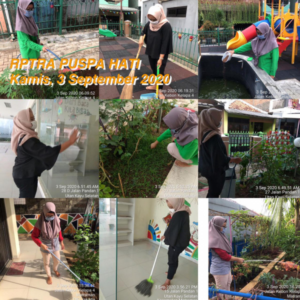 - Membersihkan indoor dan outdoor RPTRA (menyapu dan mengepel lantai)