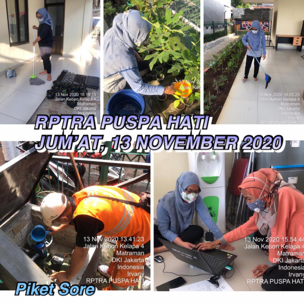 Kegiatan Piket dan Monitoring pengelola Rptra kelurahan Utan Kayu Selatan 13 November 2020