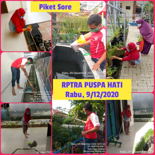 Berada dalam situasi tanggap darurat bencana virus corona (COVID-19) tidak menghentikan semangat para pengelola RPTRA di wilayah Kelurahan Utan Kayu Selatan. Sesuai arahan pengurus, para pengelola RPTRA diharuskan WFH (Work From Home) karena RPTRA ditutup untuk sementara waktu sampai waktu yang ditentukan nanti. Setiap harinya ada piket dan monitoring oleh para pengelola RPTRA. Hal ini bertujuan agar RPTRA tetap terjaga kebersihan dan keindahannya walau dalam keadaan pandemi virus corona (COVID-19).Kegiatan yang biasa dilakukan oleh para pengelola RPRA yaitu :