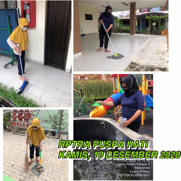 - Membersihkan indoor dan outdoor RPTRA (menyapu dan mengepel lantai)