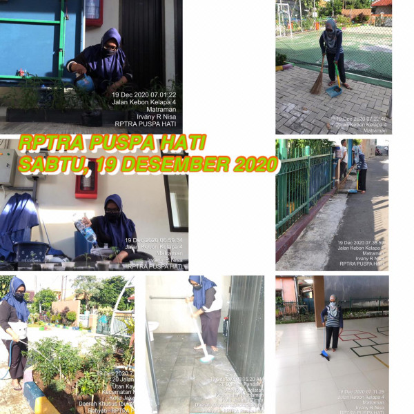 - Membersihkan indoor dan outdoor RPTRA (menyapu dan mengepel lantai)