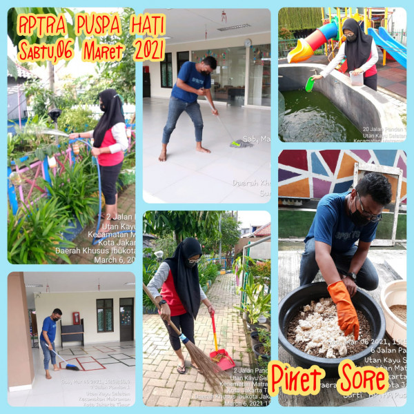 - Membersihkan indoor dan outdoor RPTRA (menyapu dan mengepel lantai)