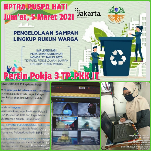 Kegiatan pengelola mengikuti Pertemuan Rutin Pokja 3 TP.PKK Jakarta Timur yang diadakan untuk menginformasikan program-program kegiatan khususnya dari Pokja 3.