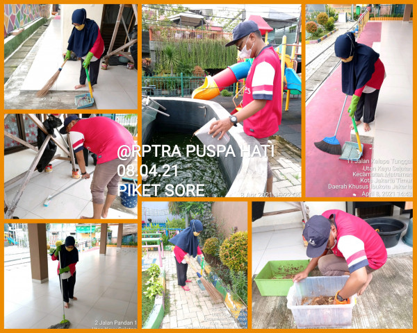 - Membersihkan indoor dan outdoor RPTRA (menyapu dan mengepel lantai)