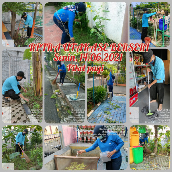- Membersihkan indoor dan outdoor RPTRA (menyapu dan mengepel lantai)