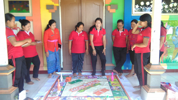 Melakukan penyuluhan oleh kader BKR Krisna dengan permainan monopoli Gender. Pelaksanaan permainan ini terdiri dari moderator, penulis, narasumber, peserta sebanyak 4 orang dan Pennington.