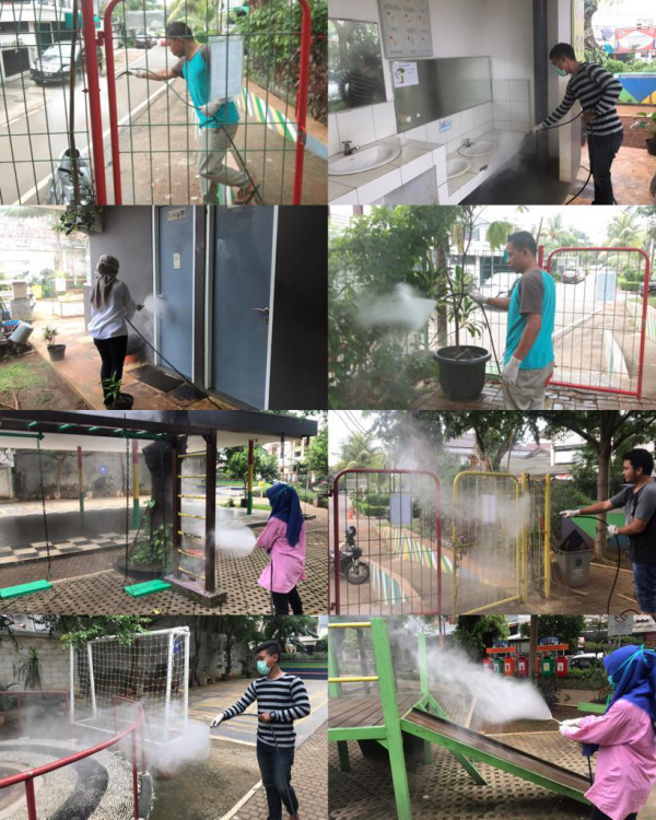 Penyemprotan Cairan Disinfektan RPTRA Kampung Benda