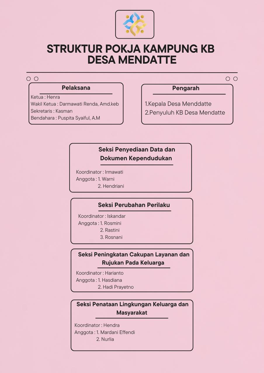 Tingkat populasi yang cukup tinggi menyebabkan masalah sosial yang berkepanjanagn terhadap kualitas pendidikan dan kesejahteraan penduduk. Untuk mengatasi masalah ini pemberdayaan masyarakat akan pentingnya keluarga berencana ditetapkan oleh pemerintah desa Mendatte sebagai daerah prioritas pencanangan kampung KB
