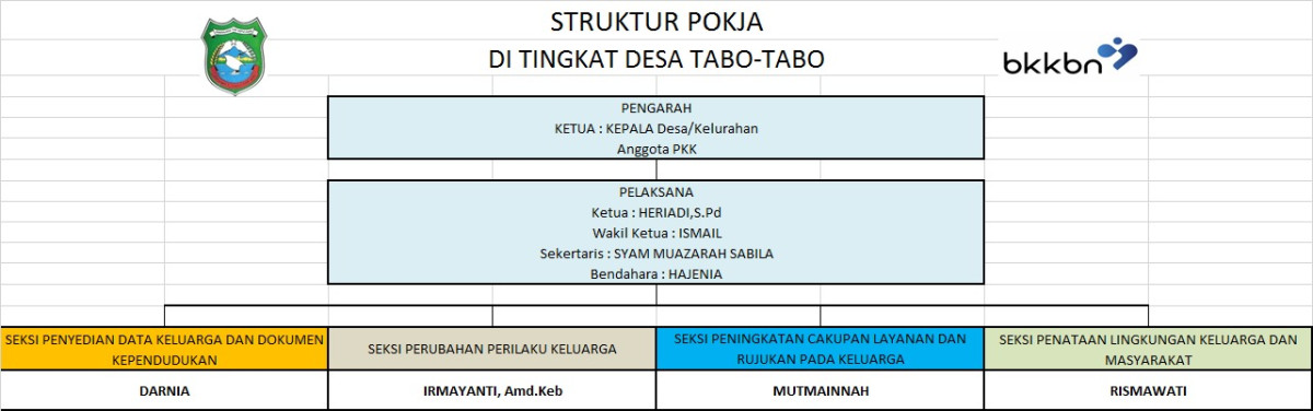 kepengurusan Kampung KB yang dikukuhkan dengan keputusan dari Kepala Desa Tabo-Tabo kecamatan Bungoro