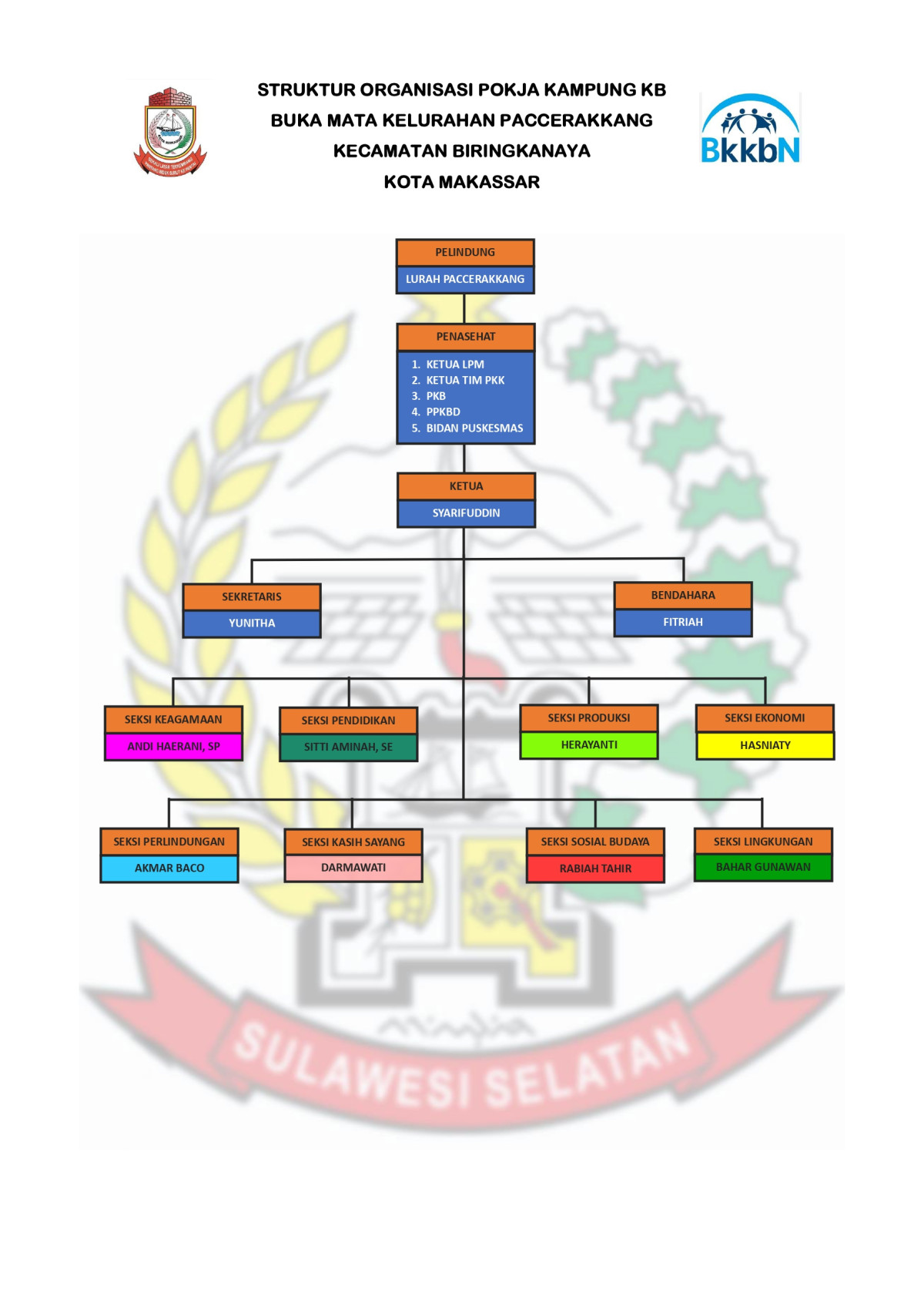 Di kampung KB Paccerakkang terdapat kelompok Bina Keluarga Balita, Bina Keluarga Remaja, Bina Keluarga Lansia, UPPKA, yang melakukan pembinaan oleh PLKB dan kader IMP tiap bulan. Sekretariat dan kepemilikan ruangan kerja juga tersedia dikampung KB Paccerakkang, dimana didalamnya terdapat struktur kepengurusan kampung keluarga berkualitas.