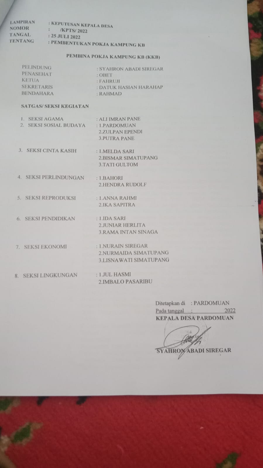Surat Keputusan/Instruksi/Surat Edaran dari Gubernur Surat Keputusan/Instruksi/Surat Edaran dari Bupati/Walikota SK Kecamatan tentang Kampung KB SK Kepala Desa/Lurah tentang Kampung KB |