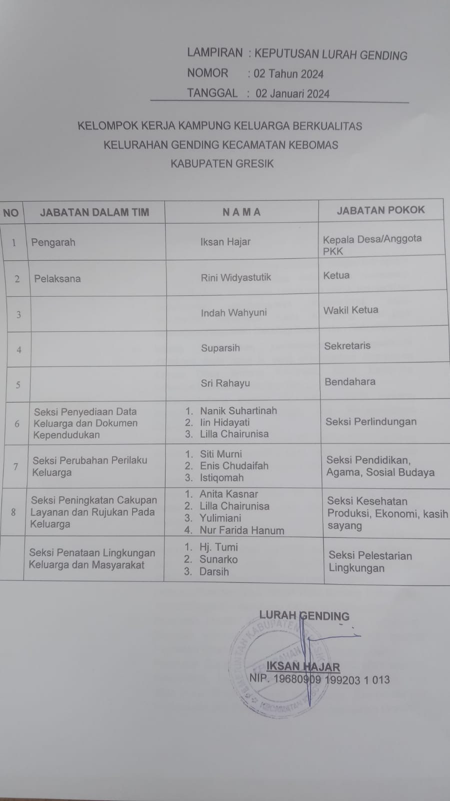 KELURAHAN GENDING terletak di wilayah kota Gresik bagian selatan , dengan berbatas desa segoromadu bagian selatan, Kelurahan SIDOMORO bagian Utara, kelurahan Singosari bagian timur dan kelurahan Ngargosari bagian barat . Suatu sistem yang sudah terbangun baik dibidang lingkungan, kesehatan dan ekonomi untuk kesejahteraan yang sudah berjalan dengan berbagai prestasi yang diraih oleh kelurahan Gending sebagai Desa siaga, kampung KB, Jawa timur berseri, proklim dan menjadi profil projek kampung zero waste program GKMS ( GRESIK KAWASAN MERDEKA SAMPAH ) Program dari Dinas Lingkungan Hidup Kabupaten Gresik |
