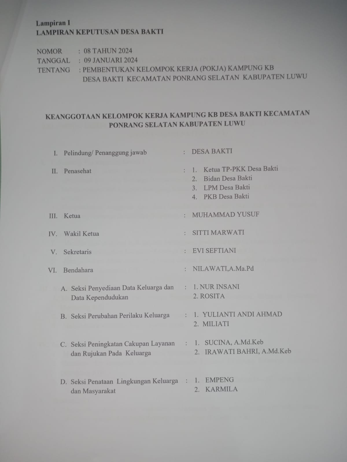 Sejarah Pemerintahan Kepala Desa Bakti Kecamatan Ponrang Selatan