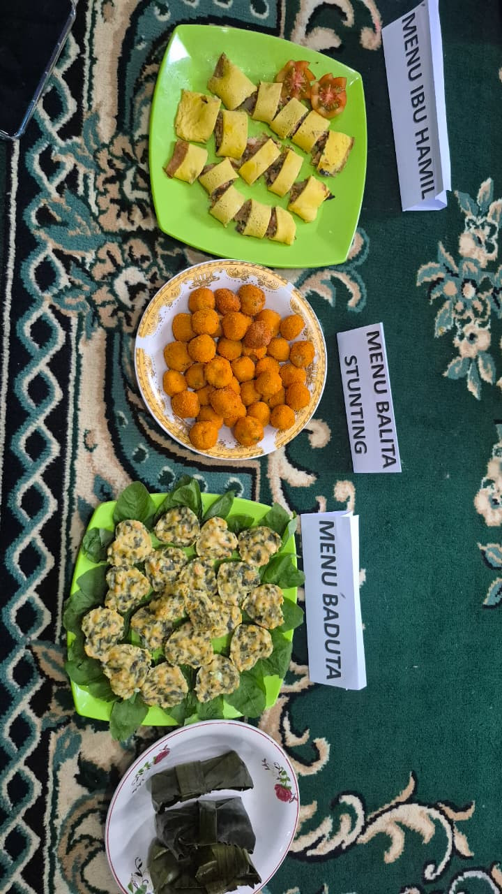 Kegiatan ini bertujuan untuk memberikan pengetahuan kepada ibu Hamil dan Keluarga Stunting cara mengelolah makanan agar anak stunting ada keingan untuk makan, yang dihadiri oleh DP3AP2KB,Kepala Desa,Kepala Pustu,Gizi,Bidan Desa,Ibu Hamil, Keluarga Stunting