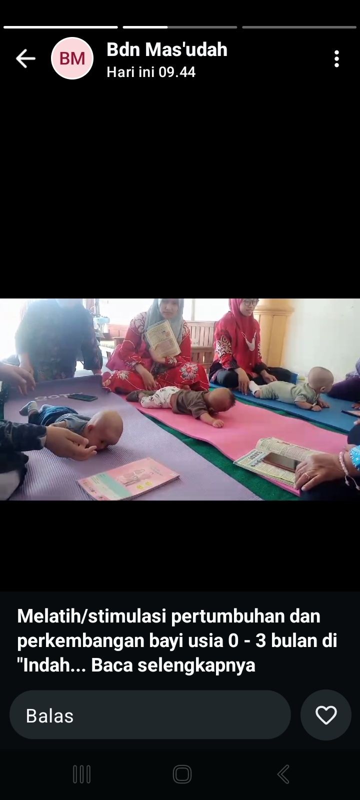 Kegiatan ini bertujuan untuk..menstimulan anak usia 0 - 3 bulan.., yang dihadiri oleh..ibu2 dan badutanya...,