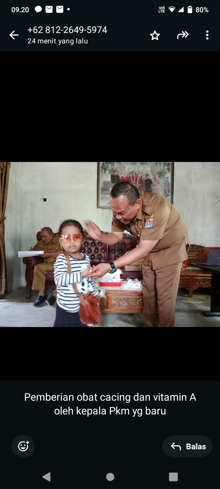 Kegiatan ini bertujuan untuk memantau tumbuh kembang Balita dan pemberian Obat cacing dan vit A