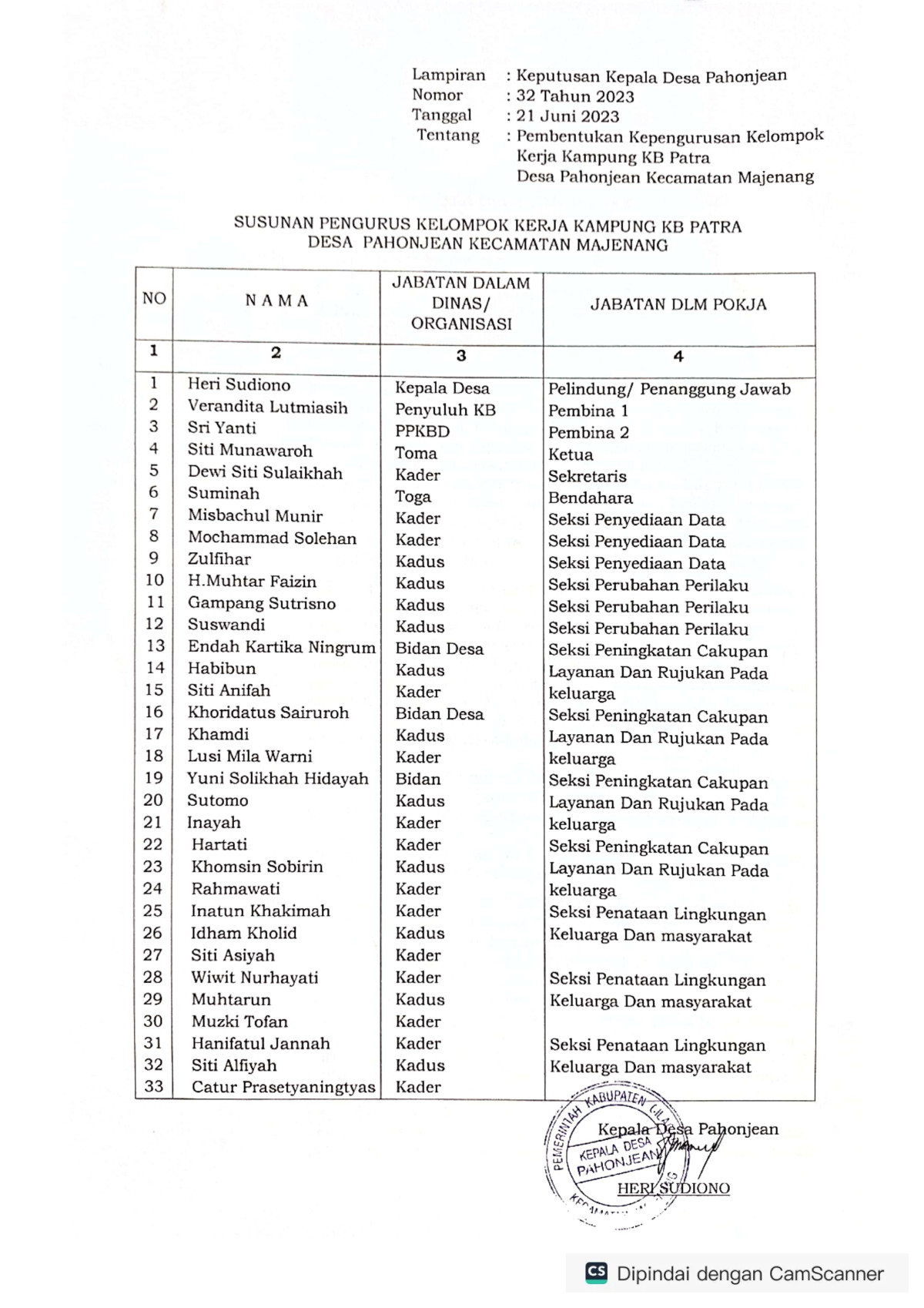 Desa Pahonjean sebagai berikut :