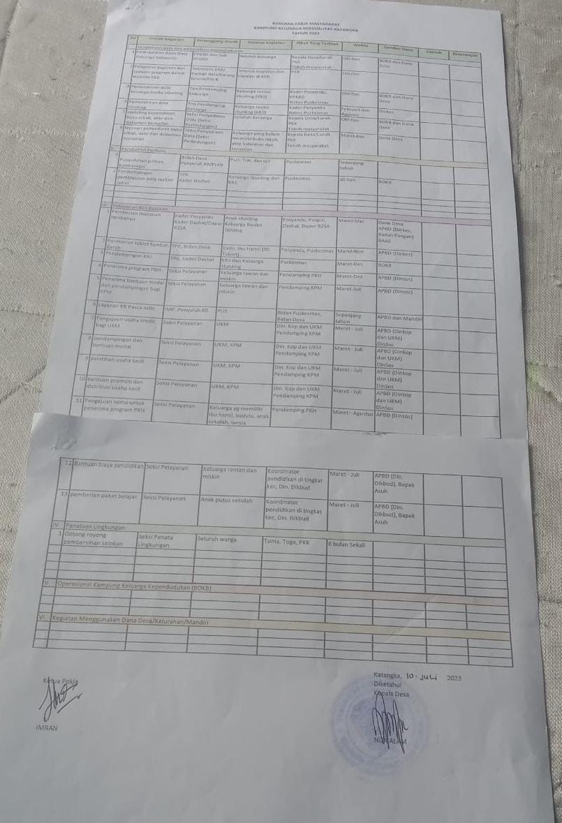 1.6 RENCANA KERJA MASYARAKAT/POKJA KAMPUNG KB DESA KATANGKA