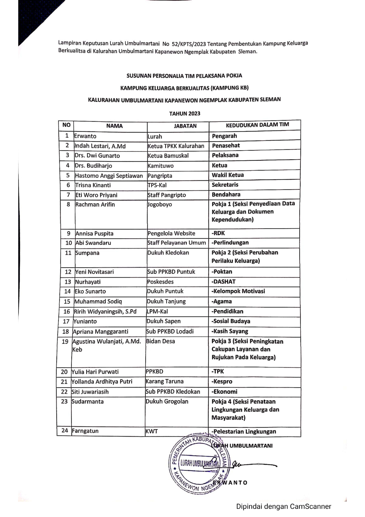 Dalam rangka pelayanan kepada masyarakat, Pemerintah Desa Umbulmartani didukung oleh eksistensi berbagai lembaga desa, antara lain: (1) Badan Keswadayaan Masyarakat (BKM) “Umbulsejahtera”; (2) Lembaga Pemberdayaan Masyarakat Desa (LPMD), (3) Badan Permusyawaratan Desa (BPD), (4) Pemberdayaan dan Kesejahteraan Keluarga (PKK), dan (5) Karang Taruna “Tunas Harapan”. Berdasarkan hasil survei pendahuluan, menunjukkan bahwa BKM, LPMD, BPD, PKK, dan Karang Taruna tersebut merupakan kelembagaan masyarakat yang mengakar, representatif dan dipercaya, dibentuk melalui kesadaran kritis masyarakat untuk menggali kembali nilai-nilai luhur kemanusiaan dan nilai-nilai kemasyarakatan sebagai pondasi modal sosial keberdayaan dan keswadayaan masyarakat. Ketiga lembaga tersebut merupakan badan sosial di tingkat desa. Badan sosial ini memiliki peran yang sangat strategis, yaitu sebagai wahana untuk menggerakkan potensi masyarakat desa sehingga memiliki keswadayaan dan kemandirian, sekaligus sebagai badan sosial yang menjembatani kemitraan masyarakat desa dengan pemerintah daerah dan kelompok peduli setempat.Desa Umbulmartani sangat kaya akan potensi yang semuanya perlu diinventarisir dan didokumentasikan dalam video profil desa. Potensi tersebut mencakup peternakan, pertanian, perkebunan, perikanan, sumber daya alam, potensi ekonomi, sosial, budaya, dan sebagainya.