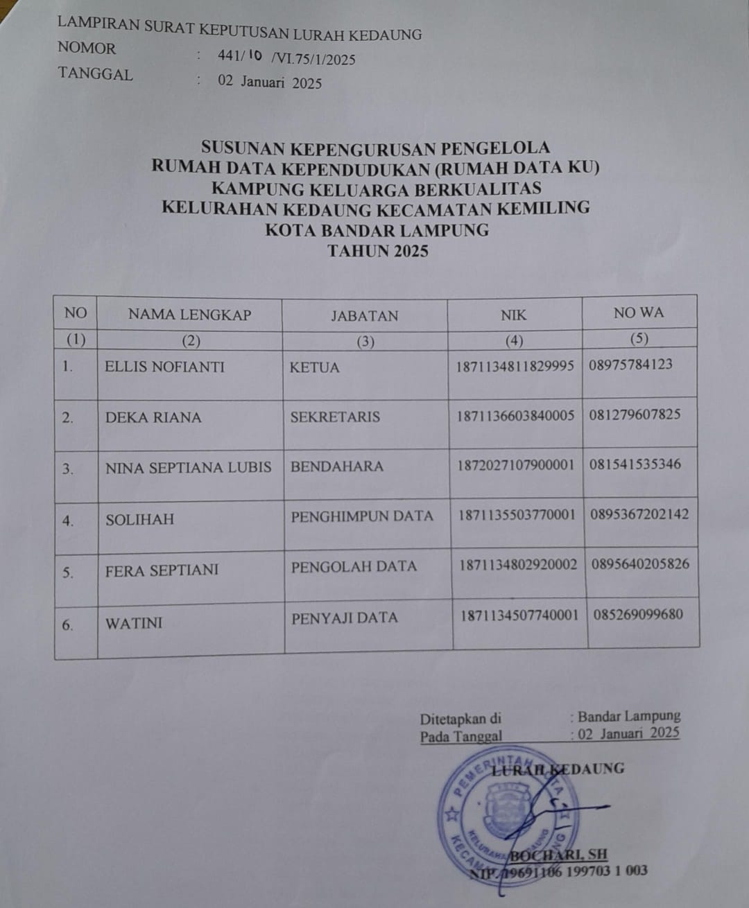 SK Kepala Desa/Lurah tentang Kampung KB |