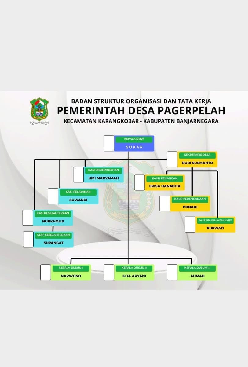 Secara administrasi Desa Pagerpelah masuk wilayah Kecamatan Karangkobar yang terdiri dari 17 RT dan 5 RW dan 4 Dusun yaitu Dusun Pagerepalah Jurang terdiri dari 5 RT, Dusun Pagerpelah Gunung 5 RT dan Dusun timbang 2 RT , Dusun Krandegan terdiri dari 5 RT dimana masing-masing dusun terdiri hanya satu RW namun untuk kadus dibagi menjadi 3 wilayah yaitu wilayah kadus 1 yang mencakup dusun Pagerpelah Jurang Kadus 2 mencakup Dusun Pagerpelah Gunung dan Kadus 3 terdiri dari Dusun Timbang kan Dusun Krandegan. Dusun ini di pimpin oleh seorang kepala dusun yang selain menjadi kepala dusun juga mempunyai kewajiban berkantor di kantor desa.