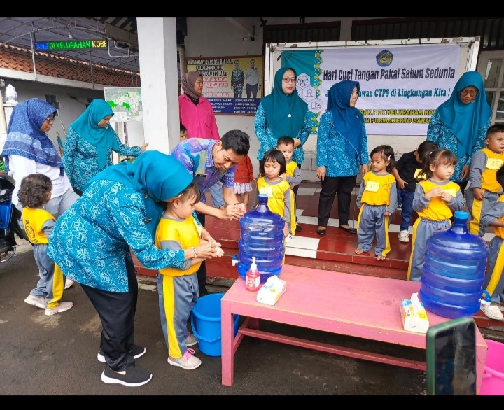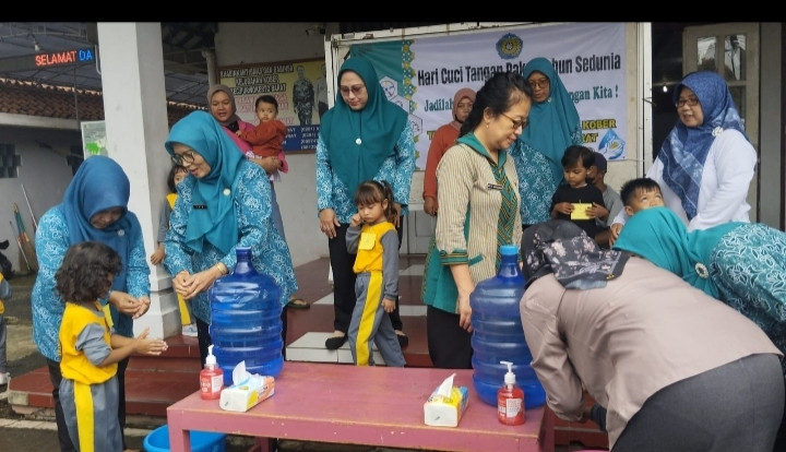 Kegiatan ini bertujuan untuk memperkenalkan cara cuci tangan agar supaya lebih menjaga kebersihan tangan yang dihadiri oleh Dokter Puskesmas,Pokja 4,Bapak Lurah,Pkk Kecamatan,Anak Paud