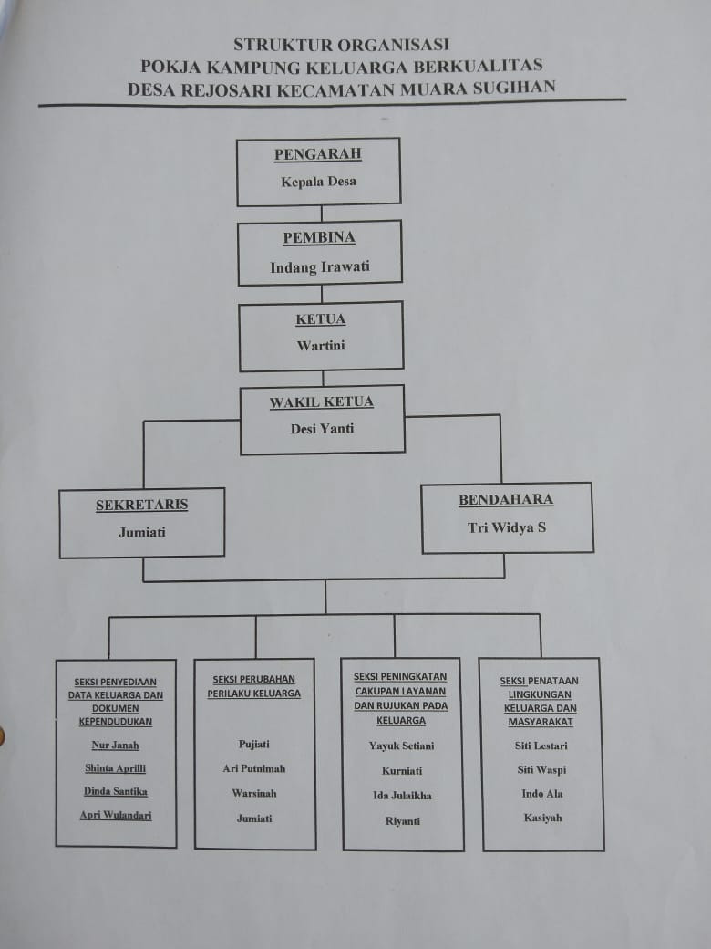 Gambaran umum desa rejosari yaitu desa rejosari sebagian besar adalah keturunan suku jawa yang datang melalui program transmigrasi pada tahun 1980, Bentuk topografi atau di dominasioleh daerah relatif datar atau sedikit bergelombang. Penamaan desa di kecamatan muara sugihan tidak terlepas dari peran pemerintah yang sudah menyediaka nama- nama kemudian di lakukan pengundian yang di wakilkan kepala desa. dengan luas tanah 1.838.00/ 18.52 KM.Desa rejosari juga memiliki batasan desa antara lain: sebelah utara : desa beringin agung blok d, sebelah selatan desa indra pura sebelah timur desa argo mulyo, sebelah barat desa Tirta Harja.Dengan jumlah pasangan usia subur ... atau jumlah kepala keluarga .... dari .... kk Jiwa