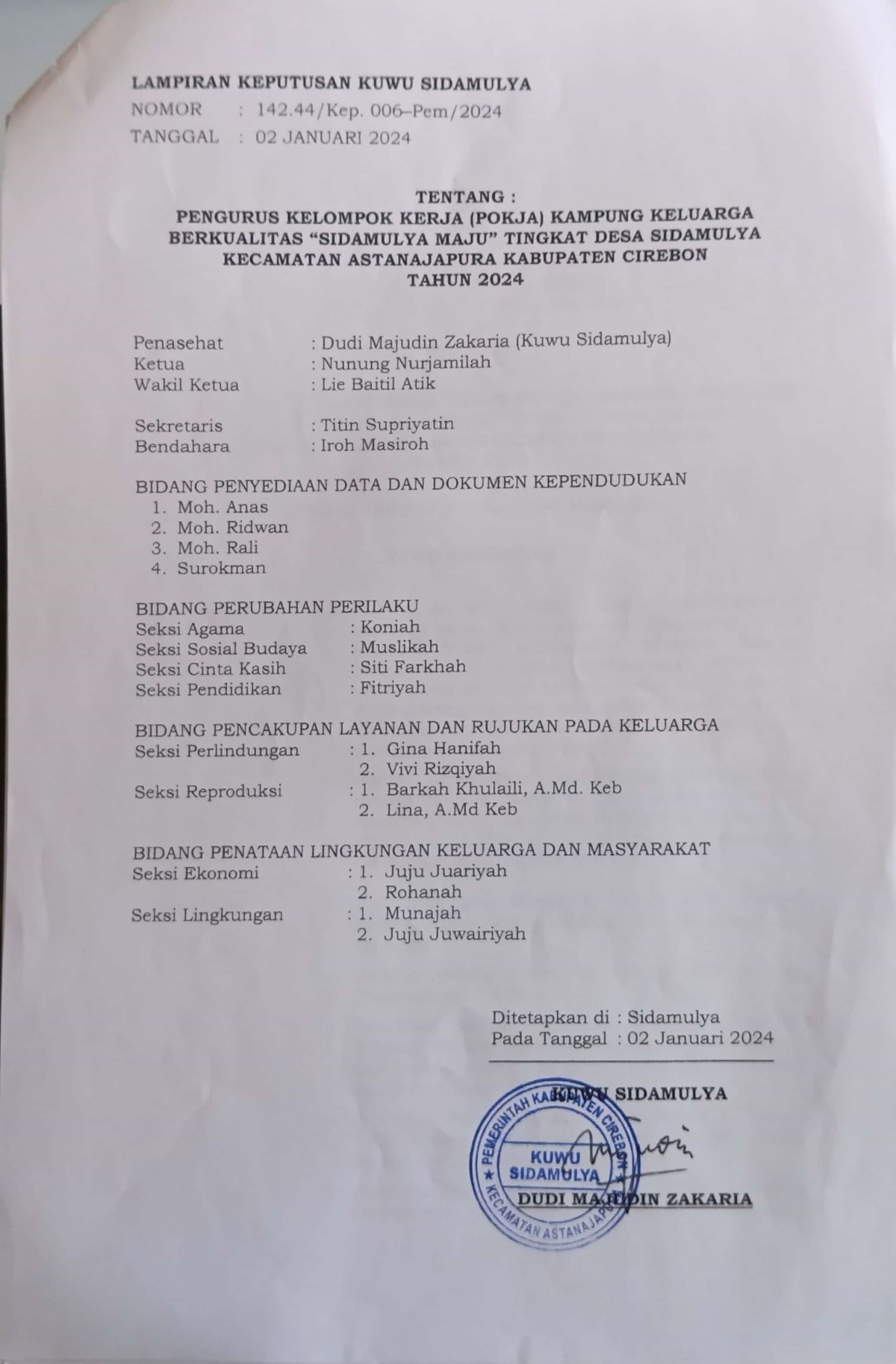Penggarapan program pembangunan berbagai sektor terkait di kampung KB diharapkan dapat dilakukan oleh masyarakat dan fasilitasi dari kepala Desa/Kelurahan, Ketua RW, Ketua RT, PKB/PLKB, PKK, Institusi Masyarakat Pedesaan (IMP),Tokoh Masyarakat, Kader, serta lintas sektor terkait.