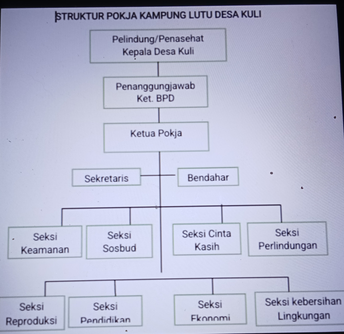 Desa Kuli memiliki 4 Dusun, 4 RW dan 13 RT sebagai Desa Definitif di dalam penyelanggaran Pelayanan masyarakat